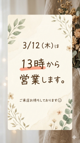 3月12日の営業案内 |